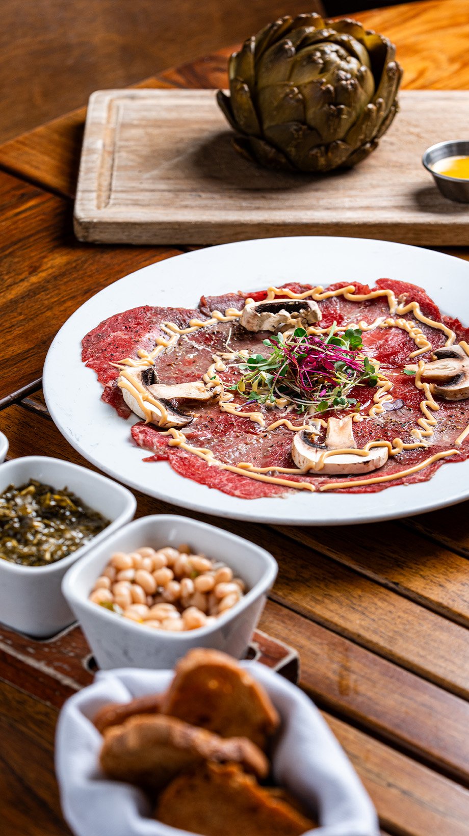 Desde cortes seleccionados de res, asados a las brasas, hasta empanadas caseras y una cuidada carta de vinos, cada detalle está concebido para que vivas la auténtica esencia de la cocina gaucha.